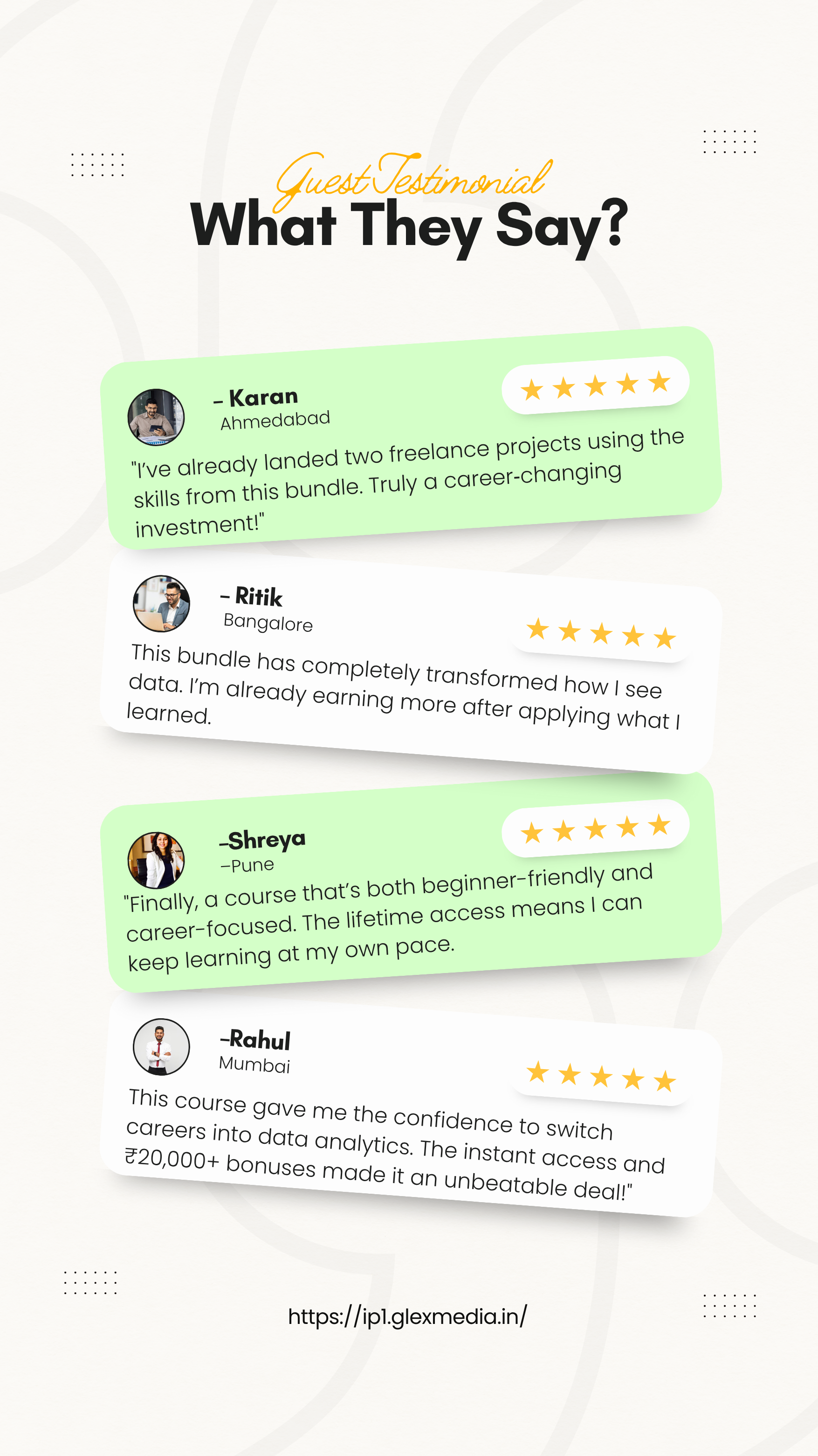 Yes! You’ll receive ₹20,000+ worth of exclusive bonuses completely free with your purchase – including premium resources, templates, and additional learning material.